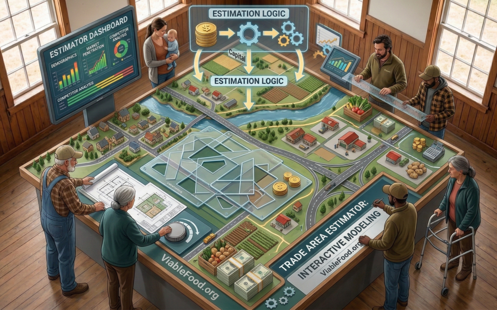 The ViableFood.org Local Grocery Estimator is a free screening tool that helps community leaders, store owners, and local advocates evaluate the realistic annual sales potential of a proposed grocery store. It is built to provide a clear reality check before significant time or funding is committed, helping identify whether a project is likely to succeed or struggle.
